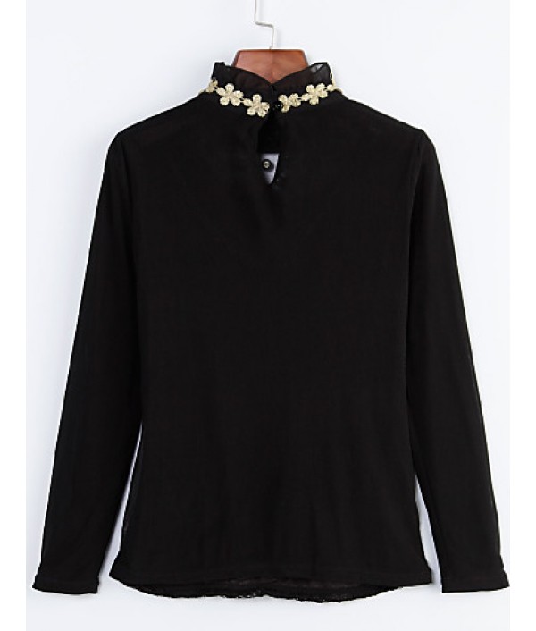 Women's Casual/Daily / Plus Size Simple Spring / Fall / Winter Blouse,Solid Stand Long Sleeve Red / Black Polyester Medium